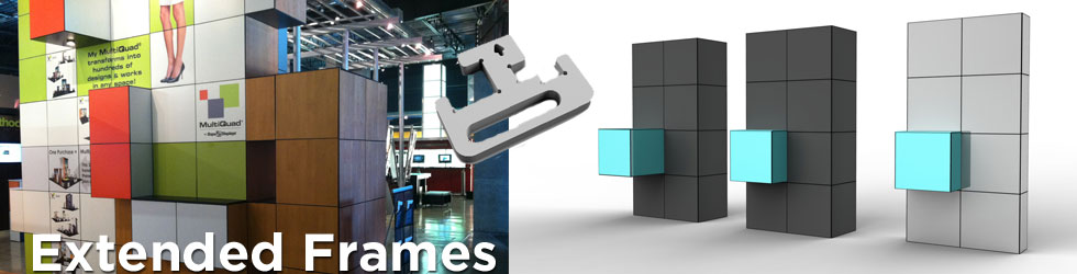 Extended Frames Learn more >>Extended Frame Kits include the frame and frame clip. For example, a 1x1 Standard Extended Frame Kit (MQ-EF11) contains (1) MQ-F11 frame and (2) clips. These frames will have Loop Velcro® installed on one side (bottom) and standard metal tape on all other sides. Coverings (Quads, shelves and lights) sold seperately.