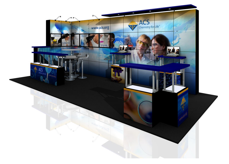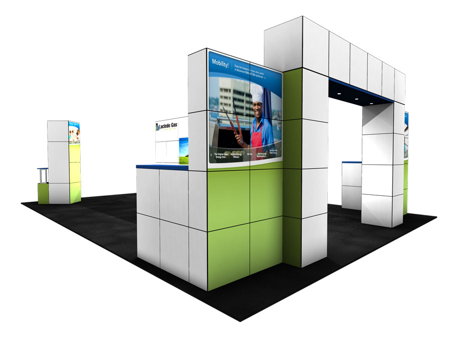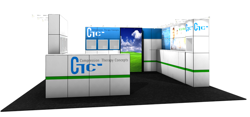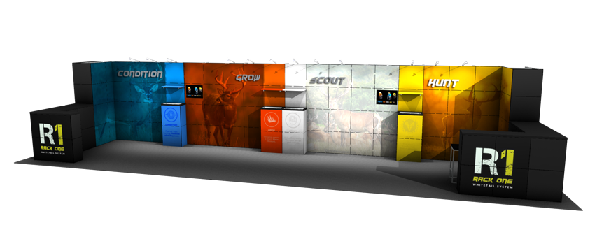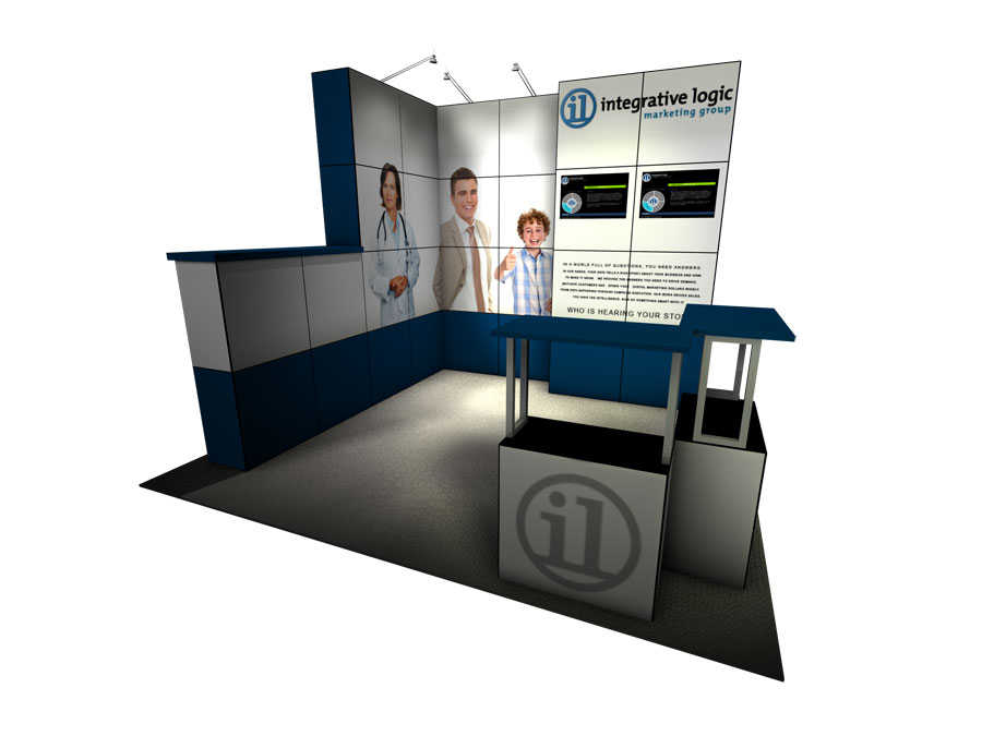 Unlike conventional displays that can only be used in one way, MultiQuad components can be rearranged, added to and taken away from. While we are showing samples of MultiQuad exhibits in specific booth spaces, these designs can be easily reconfigured to fit any size booth space.