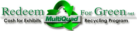 Redeem for Green is easy to sign up for and free when you purchase a MultiQuad Exhibit System. And if you no longer need your MultiQuad, instead of paying to send it to the landfill, you SELL the frames back to ExpoDisplays for up to 20‰ of the current MSRP…cash! Now that is a good way to be Green and get some Green for your efforts!