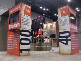 Eliminate the expense of hanging signs and get your name up to 16’ high with a rental tower. Choose from one of our standard kits or have our design team create a unique rental tower to give you a big look at your next show.